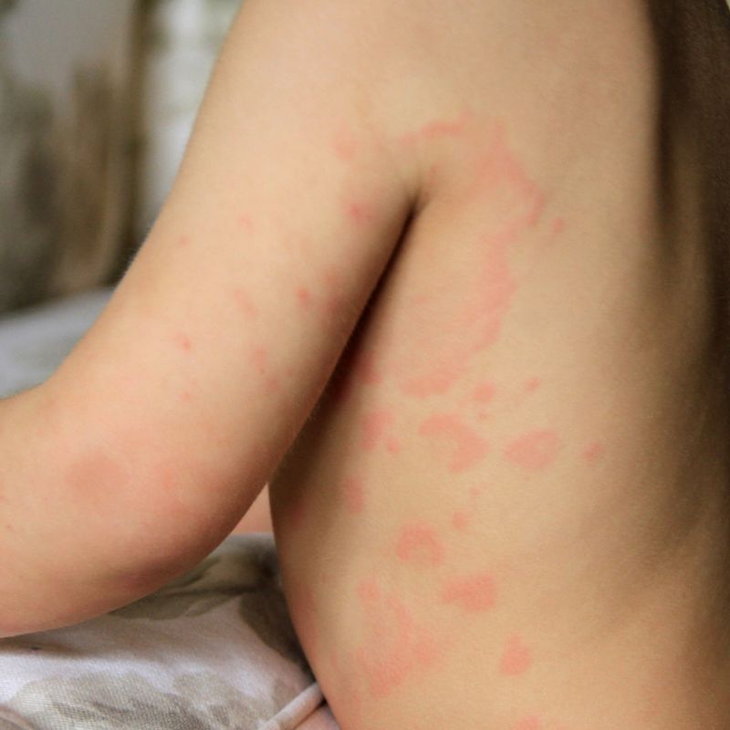 Most go away in a few hours to days, but if your baby also has swelling of the lips/tongue, or breathing issues, or appears pale or floppy, this could be a sign of anaphylaxis, so call an ambulance (more on this below)